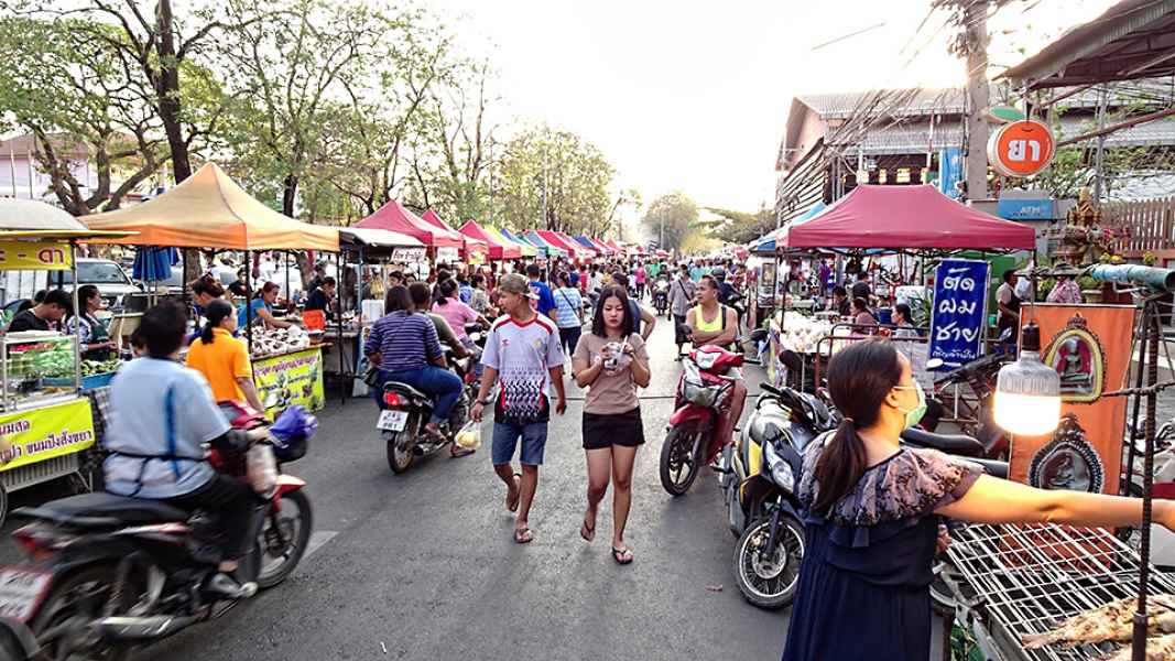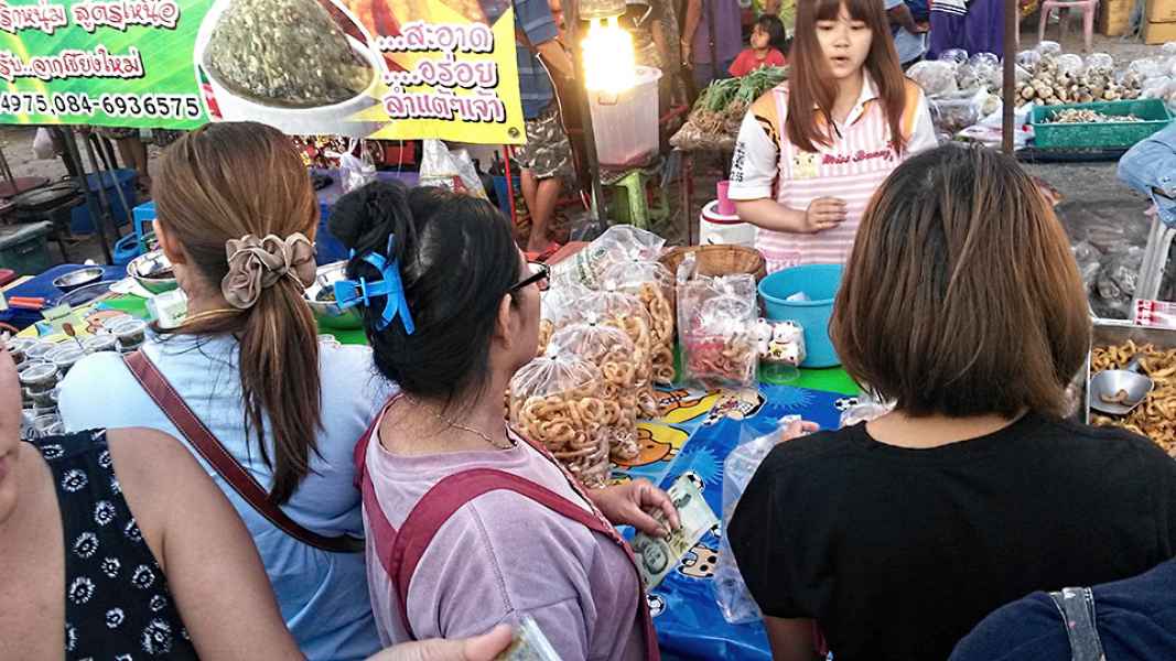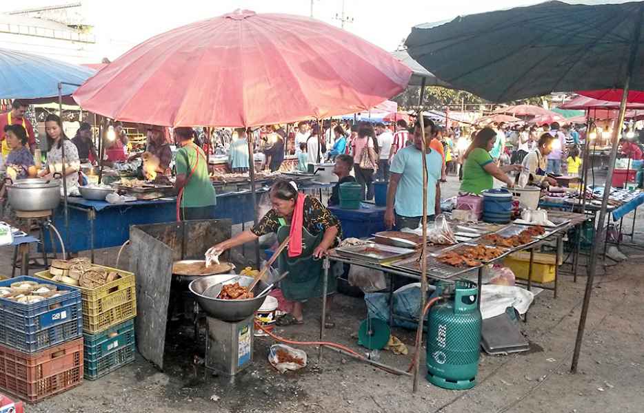 Täglich von ca. 16 bis 22 Uhr im Zentrum von Pak Chong. Eine Reihe diversen Artikeln und Kleidung, eine Reihe mit vielen Essens-Ständen.