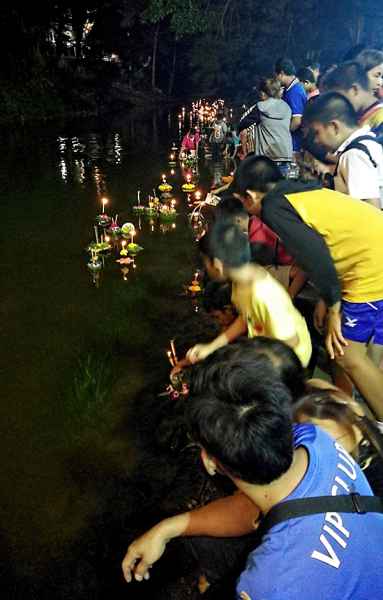 Gefeiert wird in Pak Chong an den vielen Orten, wo die Möglichkeit besteht, die Blumenschiffchen (Kratongs) nach einem stillen Gebet zu Wasser zu lassen. An manchen dieser Orte wird das Loi-Kratong-Fest mit einer Art Rummelplatz verbunden: Musik, Tanz, Boxen, Essen & Trinken, Markt.