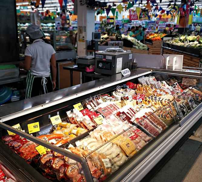 Außerdem für Ausländer interessant: die Brotabteilung und die große Theke mit ein paar Wurstwaren und sehr vielen Käsesorten, und in der Backzutaten-Abteilung 1 kg Brotbackmehl für 37 Baht (grüne Tüte).