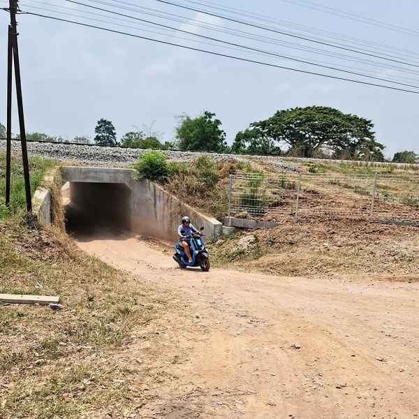Armin und Thomas haben am 1. April 2021 versucht, mit dem Mopeds den Stausee zu umrunden. Wie sie erfahren mussten, ist das leider nicht ganz möglich. Auf der dem Thao-Suanari-Garden gegenüberliegenden Seite des Stausees führen die Gleise der Eisenbahn nach Khorat entlang.