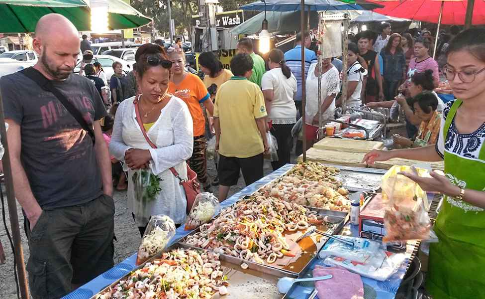 Täglich von ca. 16 bis 22 Uhr im Zentrum von Pak Chong. Eine Reihe diversen Artikeln und Kleidung, eine Reihe mit vielen Essens-Ständen.