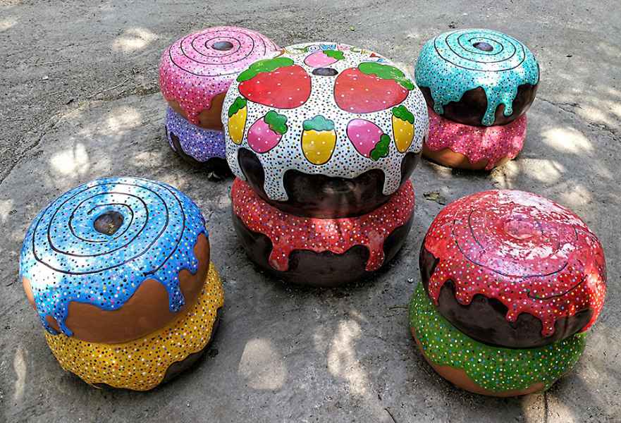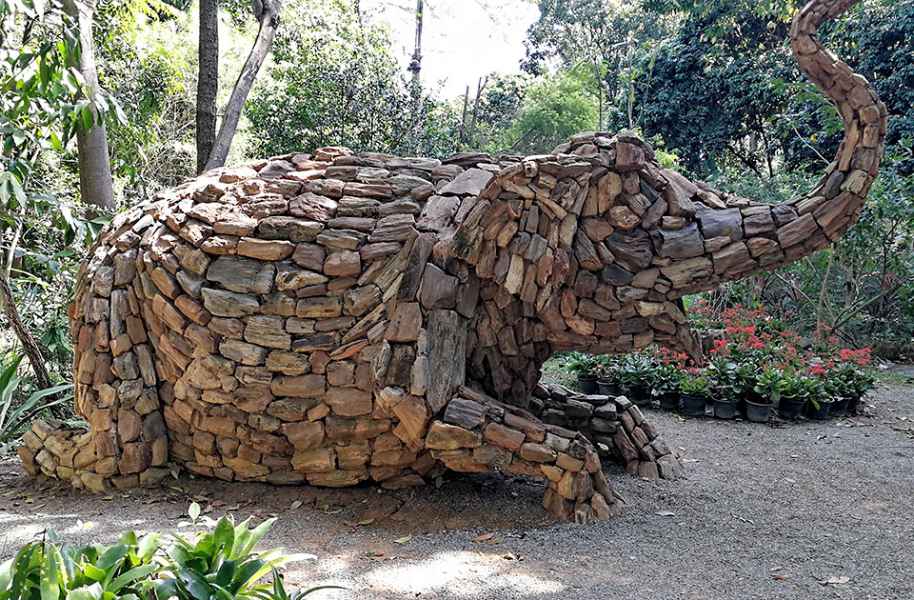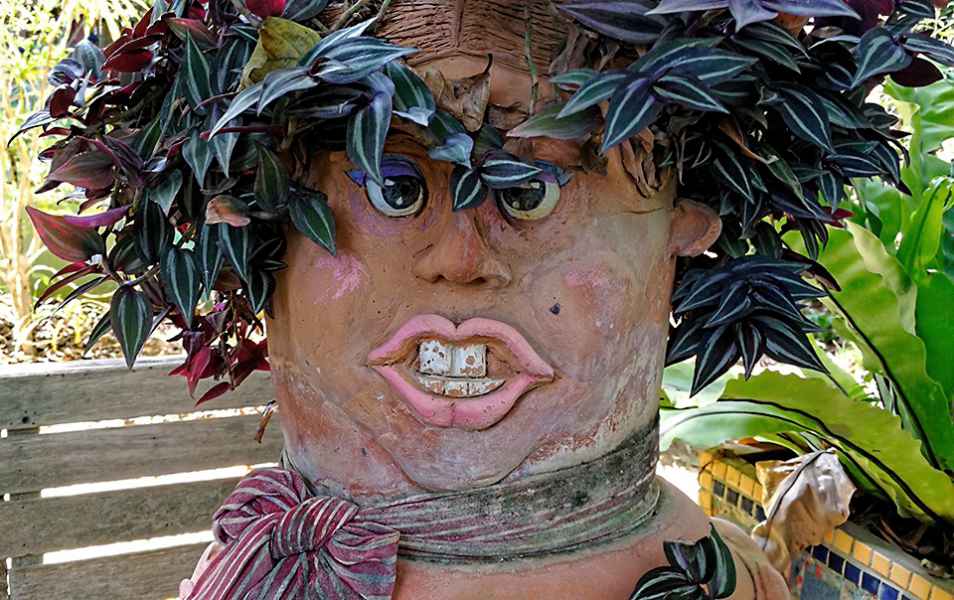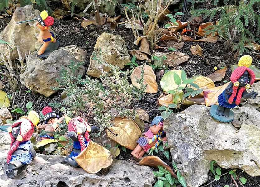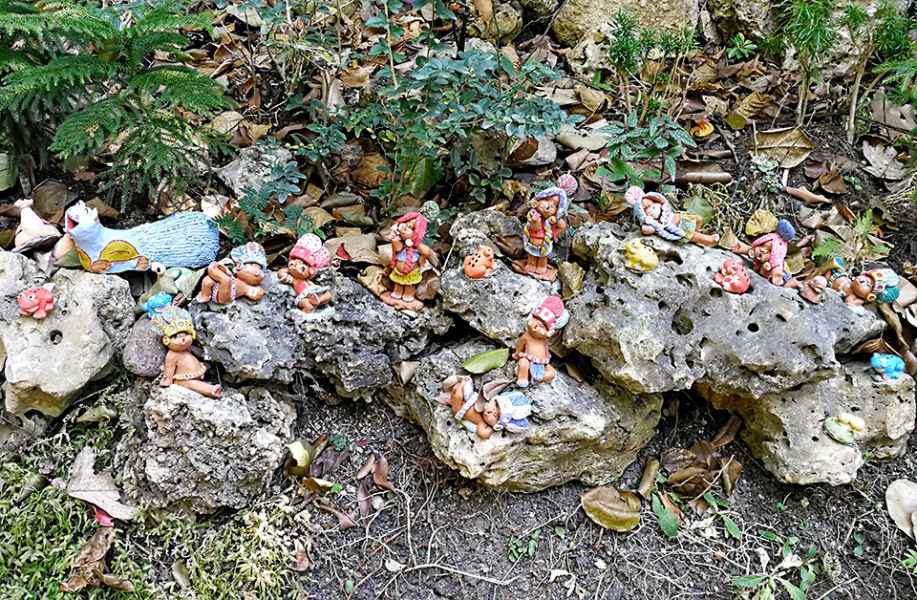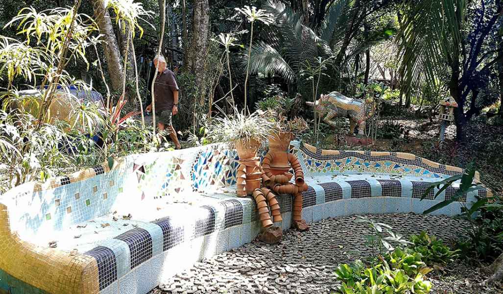 Es handelt sich um eine schöne relativ wild angelegte Gartenanlage, versehen mit Kunstwerken, Schnickschnack und zusammengetragenen Material. Man kann gemütlich in der Gartenanlage spazieren gehen und und dabei die Exponate bewundern oder sich auf einer der Bänke an den kleinen Teichen niederlassen und entspannen.