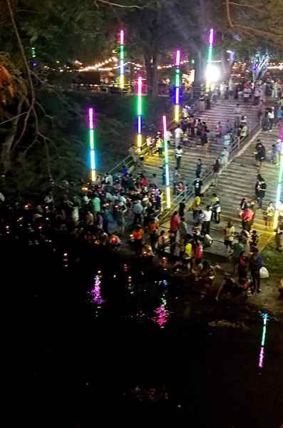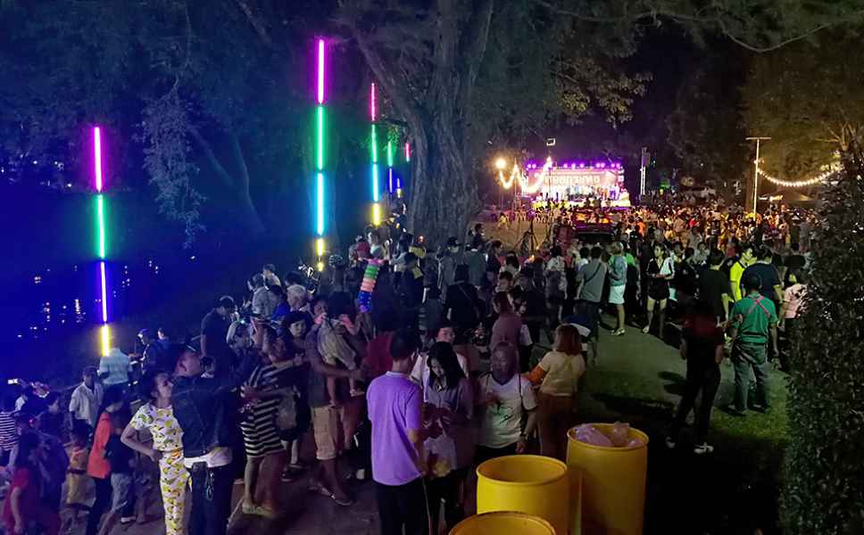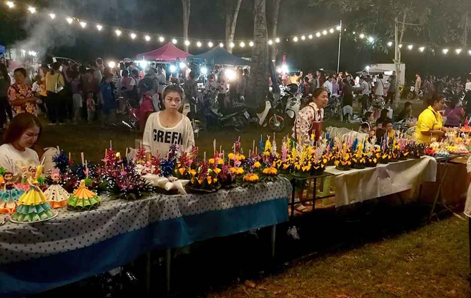 Gefeiert wird in Pak Chong an den vielen Orten, wo die Möglichkeit besteht, die Blumenschiffchen (Kratongs) nach einem stillen Gebet zu Wasser zu lassen. An manchen dieser Orte wird das Loi-Kratong-Fest mit einer Art Rummelplatz verbunden: Musik, Tanz, Boxen, Essen & Trinken, Markt.