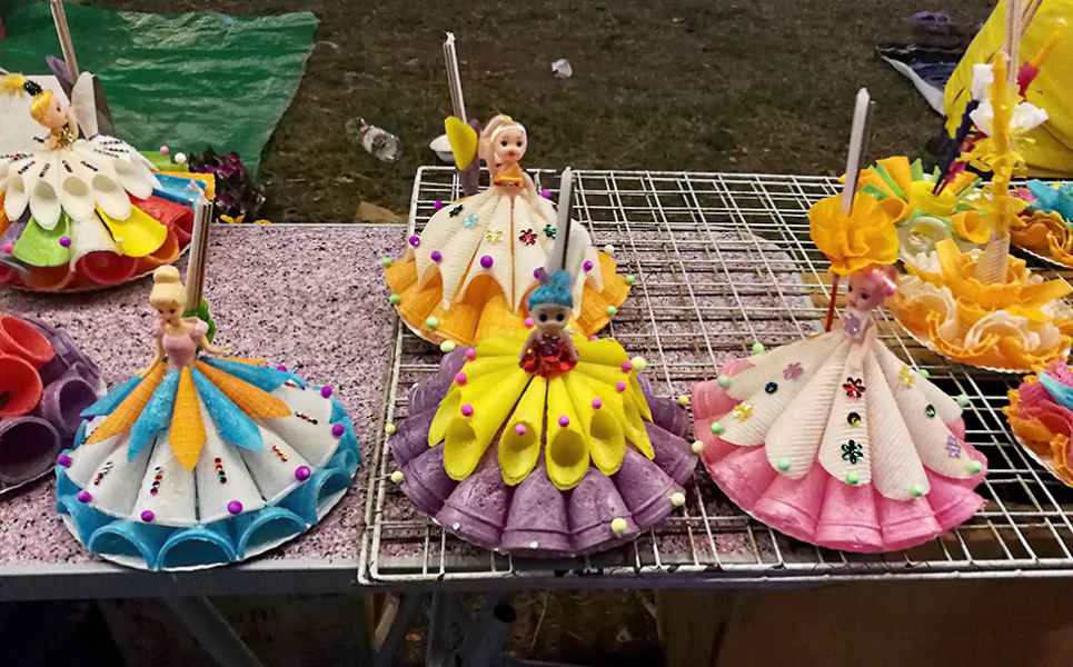 Die Kratongs kann man entweder selber basteln (als Grundlage bitte nicht Styropor sondern eine Bananenstamm-Scheibe) oder vor Ort kaufen.