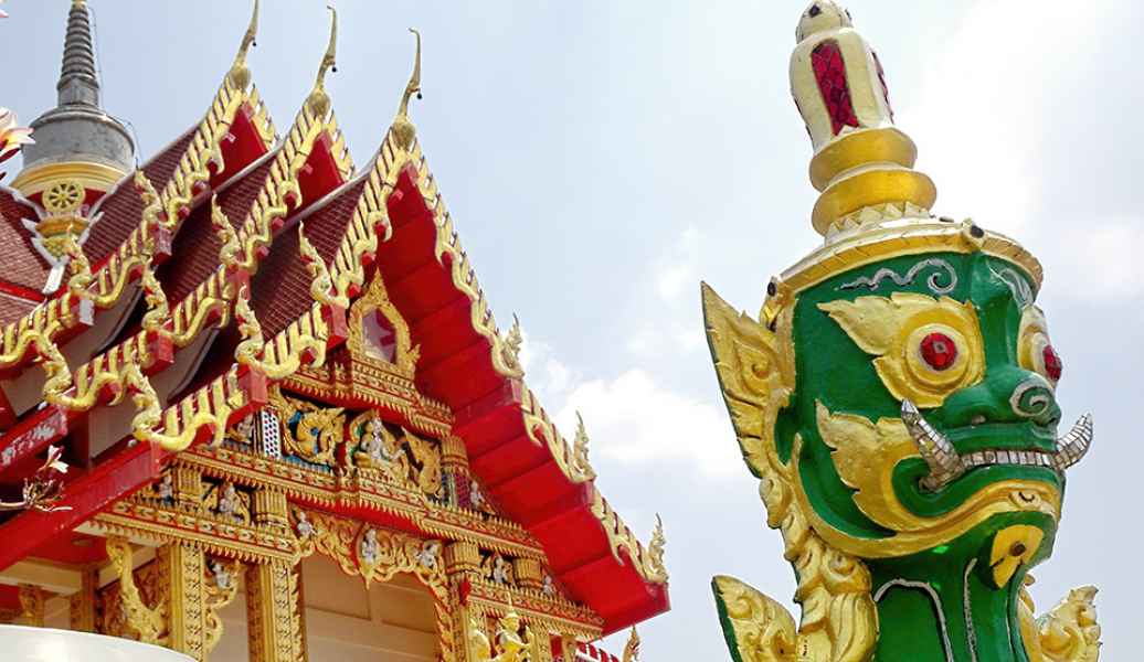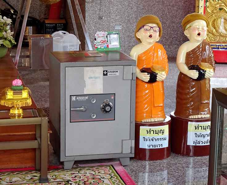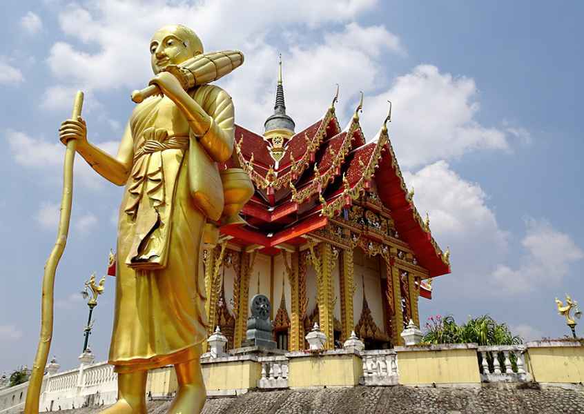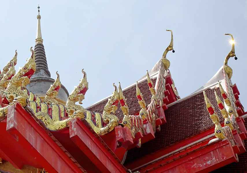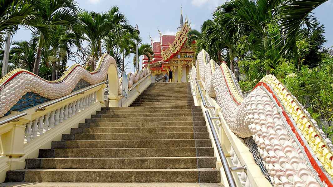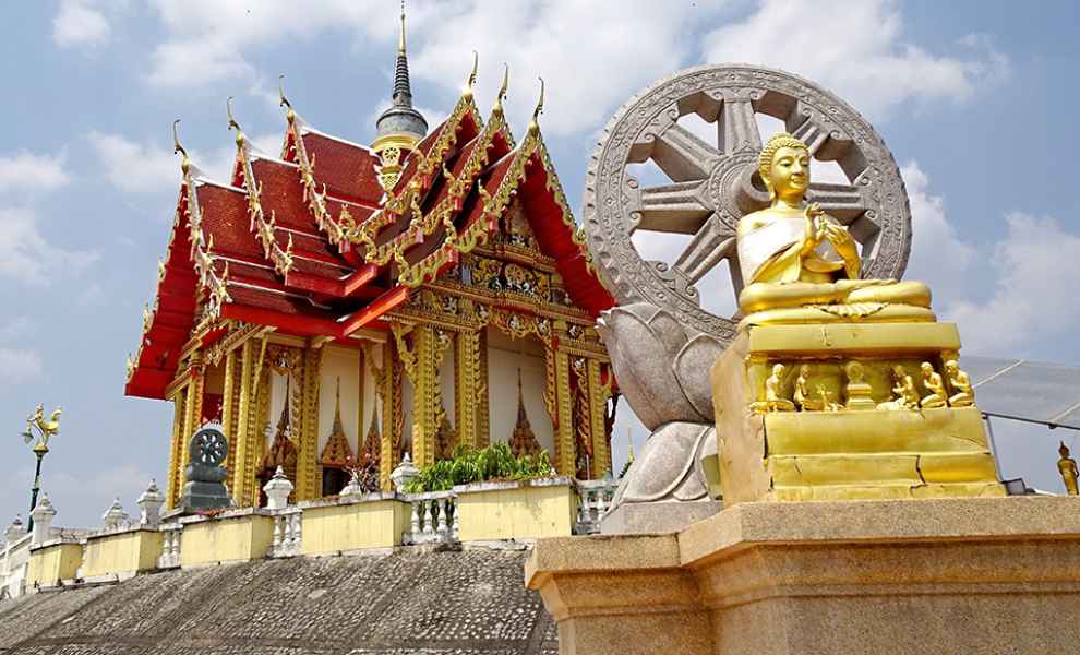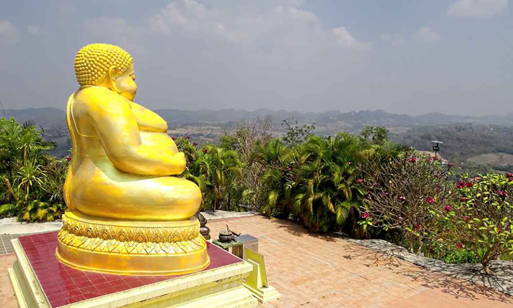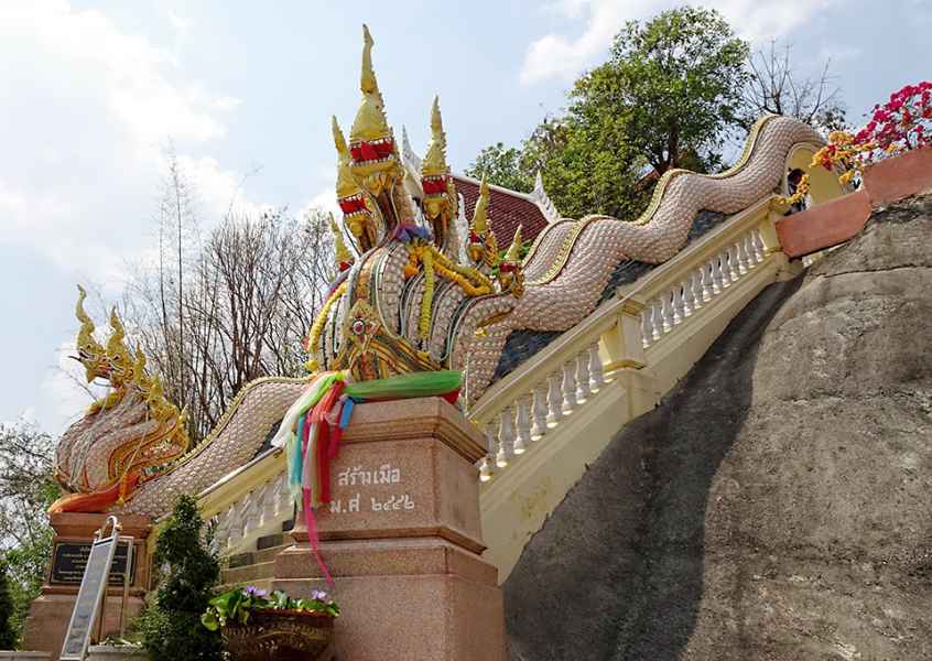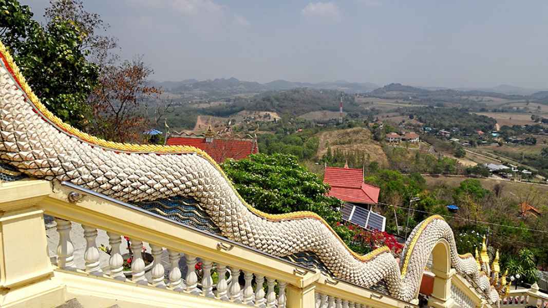 Zum Wat Pa Phu Hai Long im Khaoyai-Gebiet kommt man vor Ort mit dem Auto über eine steile Einbahnstraße, muss aber doch noch einige Treppenstufen hochsteigen. Man wird belohnt durch eine ansprechende Tempelanlage und eine schöne Aussicht.