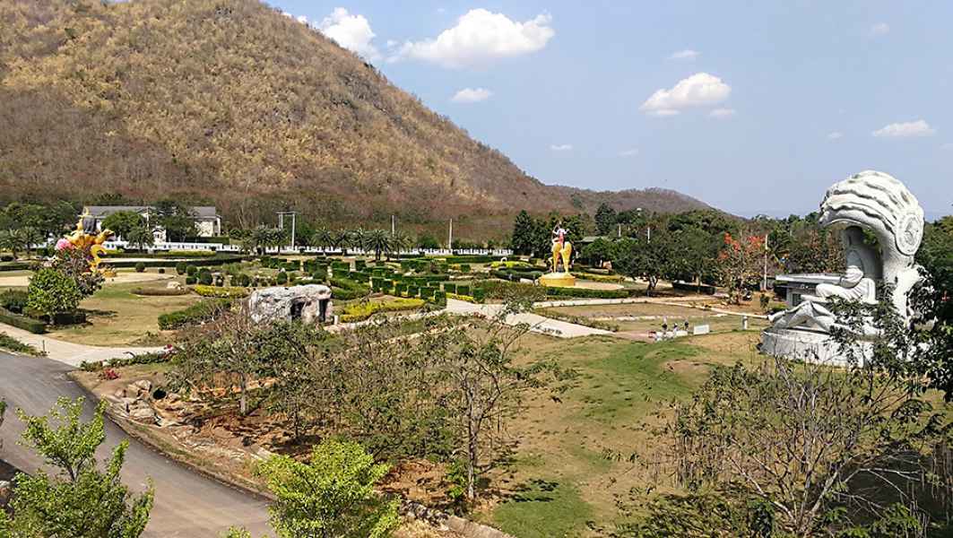 Die Anlage besteht aus der riesigen Statue des beliebten Mönchs Luang Pu Thuat (1582-1682) mit Betmöglichkeiten unterhalb der Statue, einem großen Park mit einigen eigenwilligen Statuen und zwei Reihen von Markständen – eine Reihe Food, eine Reihe Non-Food. Schirme als Sonnenschutz hängen kostenlos aus. Kopfbedeckung ist aber zu empfehlen, wenn man einen Rundgang durch den Park machen möchte. Die Botanik des Parks hängt natürlich von der jeweiligen Jahreszeit ab.