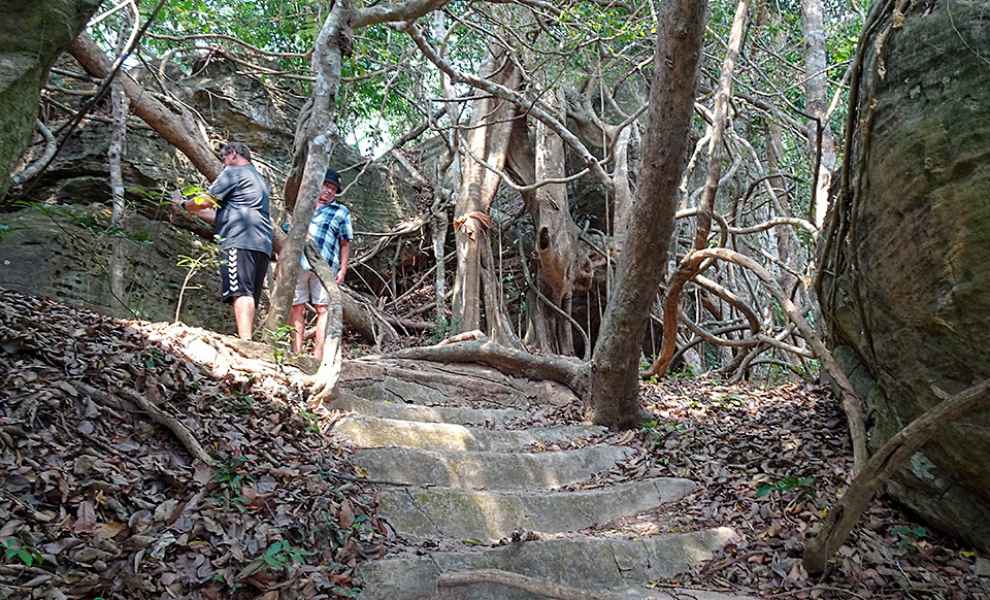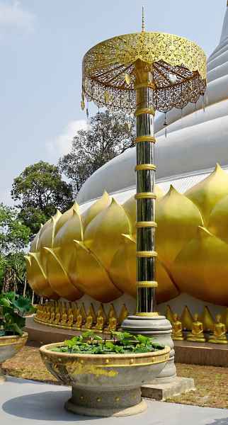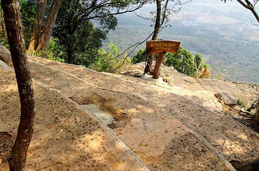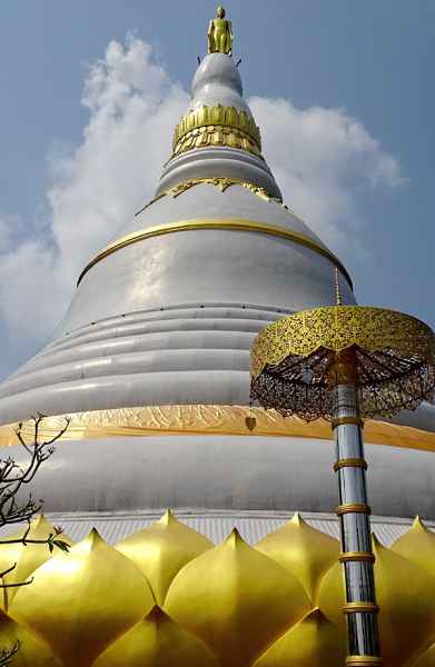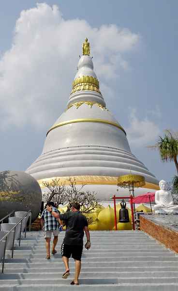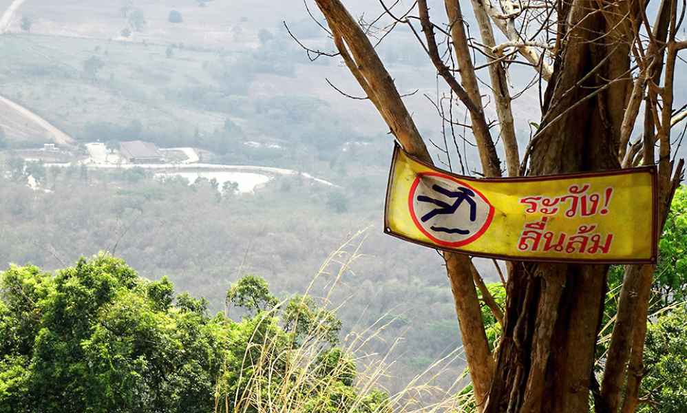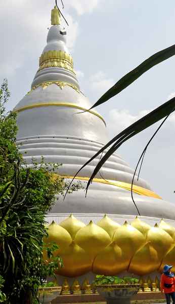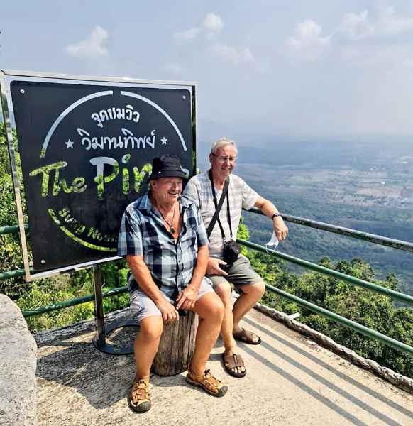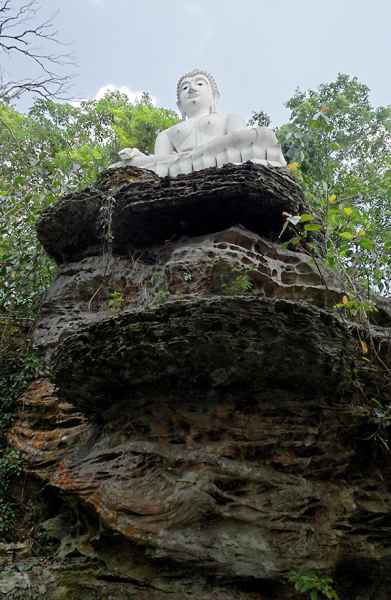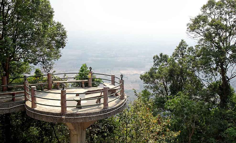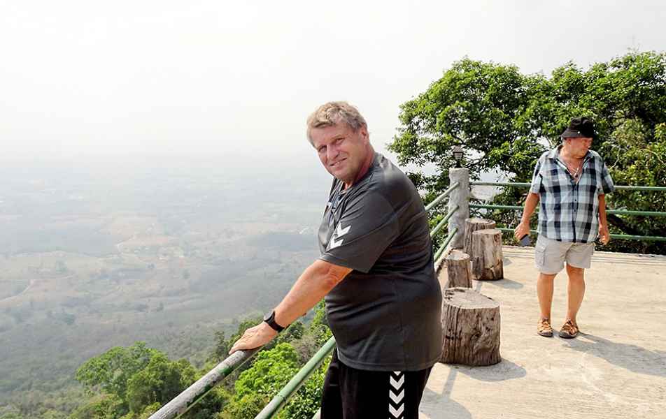 Wat Phra Thatu Chom Pha ist ein Tempel am Abgrund – mit weitem Blick auf das Hinterland von Pak Chong – wenn es nicht ganz so diesig ist. Um mit dem Auto hinzukommen, muss man einen großen Bogen machen, da ein direkter Weg von Pak Chong wegen der steilen Berglandschaft nicht möglich ist.