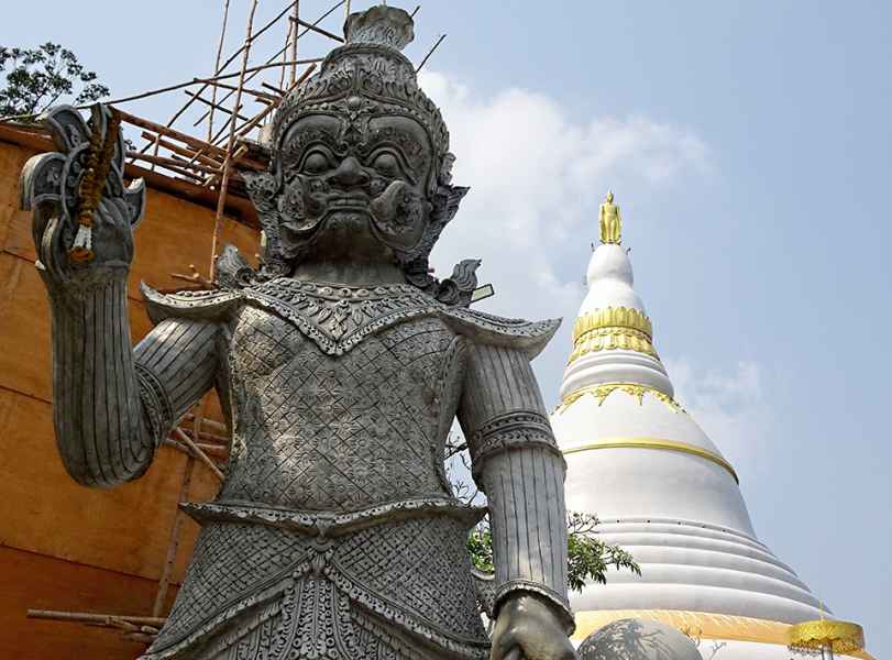 Die Tempelanlage ist im Vergleich zu anderen Tempeln recht einfach, aber in einer fast geheimnisvollen Berglandschaft errichtet – und es wird noch immer fleißig gebaut, wie wohl bei den meisten Tempeln in Thailand. Eigenartig ist, dass man an manchen Stellen Schaukeln vorfindet, mit denen man sich über den Abgrund schwingen kann – wenn man den Mut hat. Vielleicht eine Möglichkeit, unliebsame Zeitgenossen weg zu schaukeln (die Befestigungsseile sahen nicht ganz so vertrauenswürdig aus).